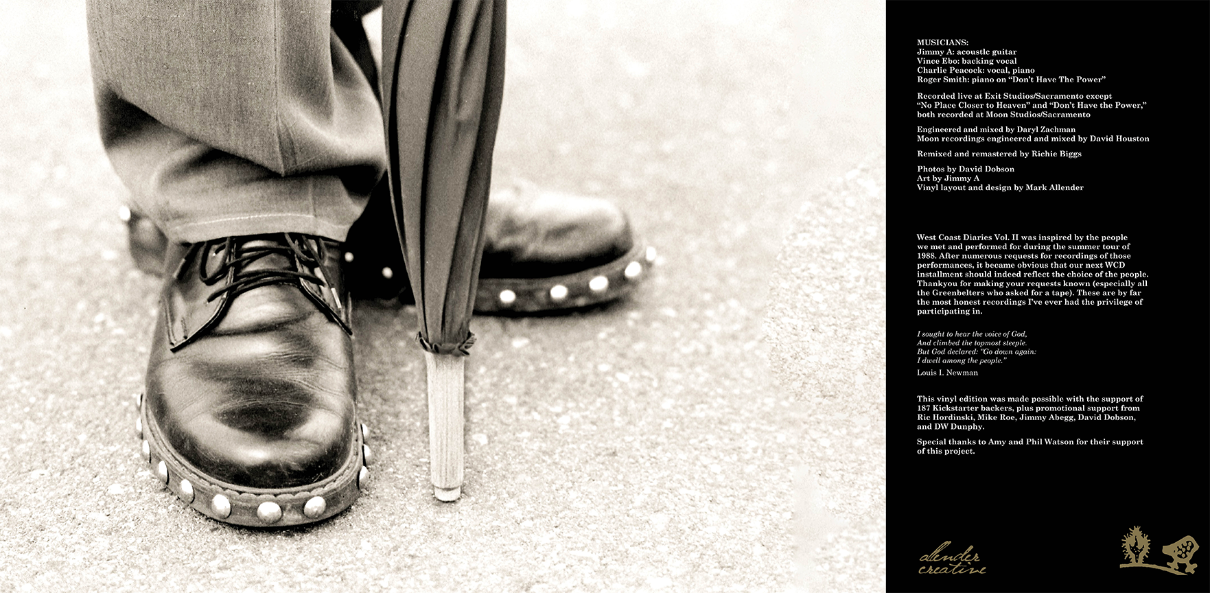 Artwork for the vinyl release of Charlie Peacock's iconic album WEST COAST DIARIES, VOLUME II