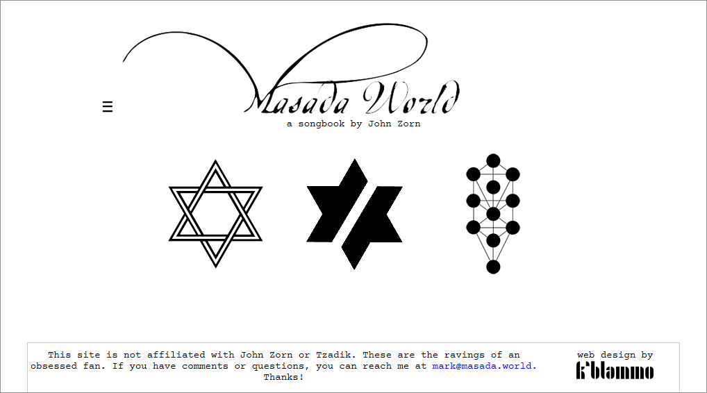 Website cataloguing the compositions in John Zorn's Masada songbooks.