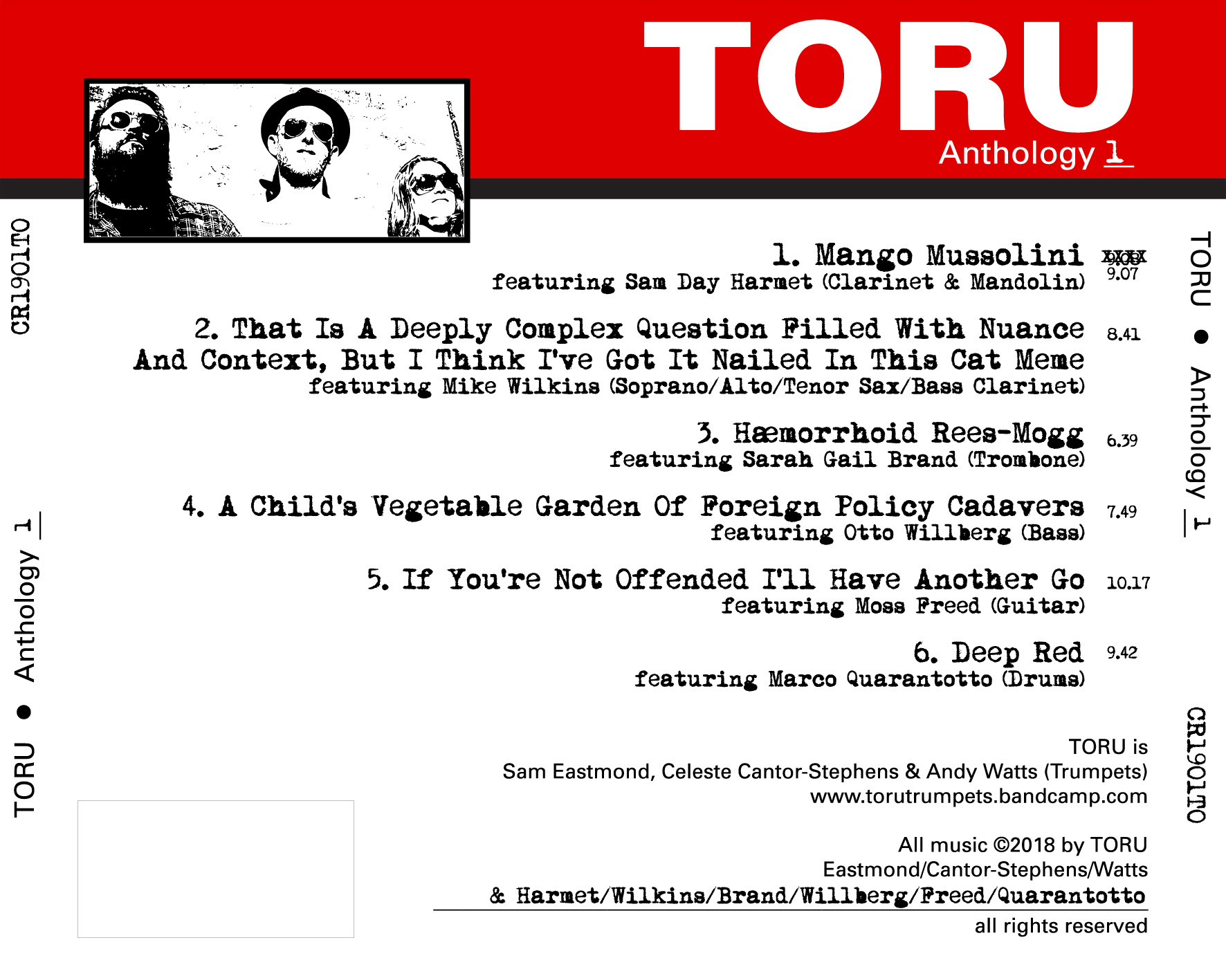 A series of album covers for TORU, a free-improv group based in the UK. Two CD packages were created and 24 digital EP's. A third CD package was designed, but the full project was never finalized.